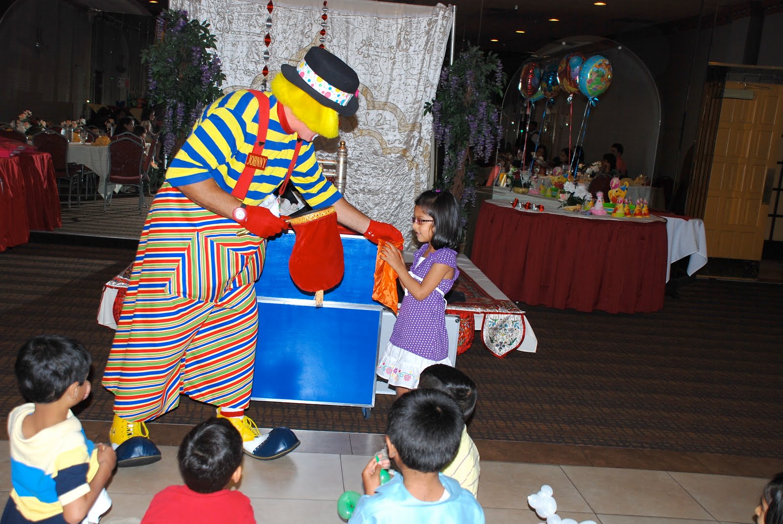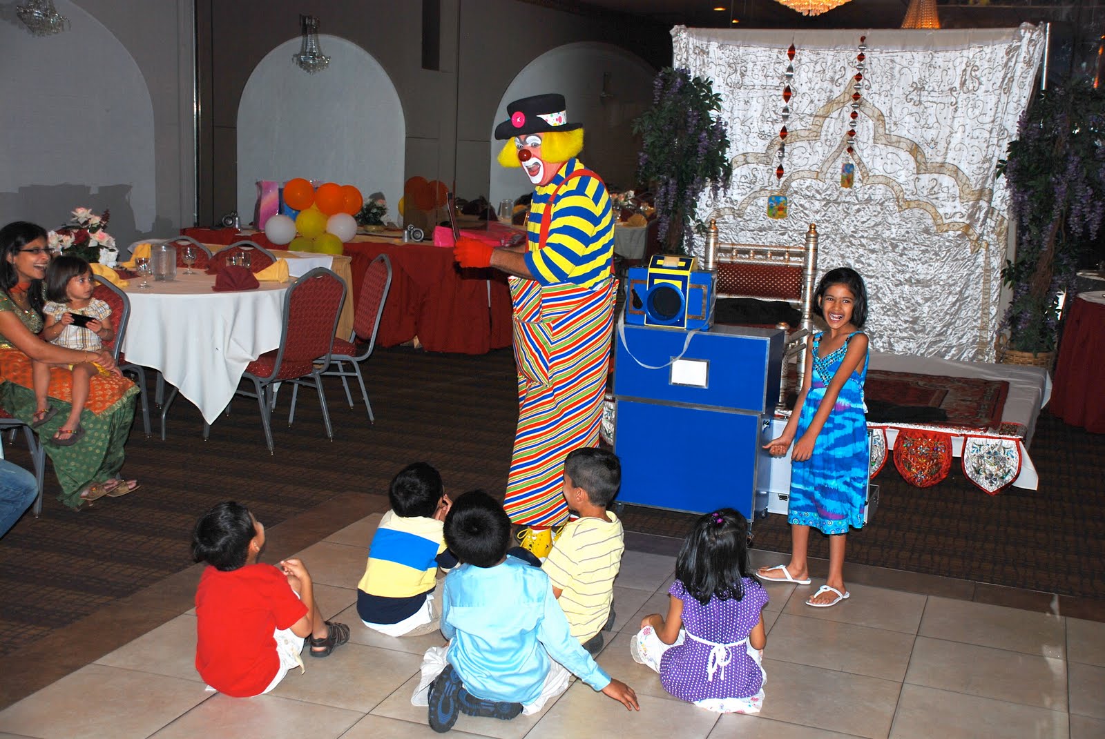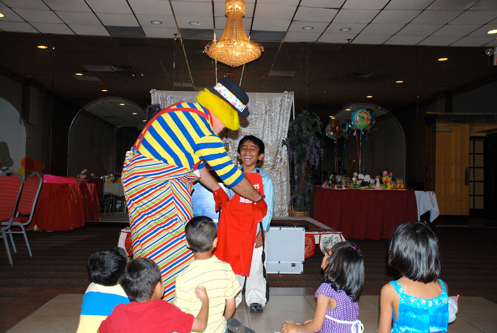 Nishka with other kids enjoying Johnny the Clown's show at Anika's 1st B'day party Jul 24 2010 12 noon